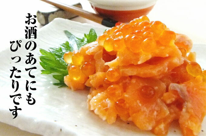 鮭ルイベの詳細 ・新鮮で脂の乗ったお刺身用サーモンと程よい大きさでとろけるような食感のイクラを使った鮭ルイベです。