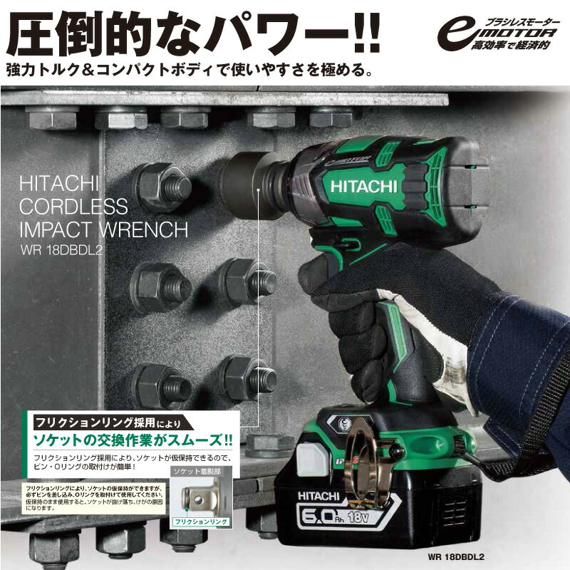 【フルセット】日立工機 日立 充電式 インパクトレンチ WR18DBDL2 2LYPK 18V 6.0Ah 6000mAh 280Nm リチウムイオン電池BSL1860+バッテリーUC18YDL+ケース セット 商品 通販 コードレス 電動工具 タイヤ交換 高トルク パワフル 締付 HITACHI 【国内正規品】
