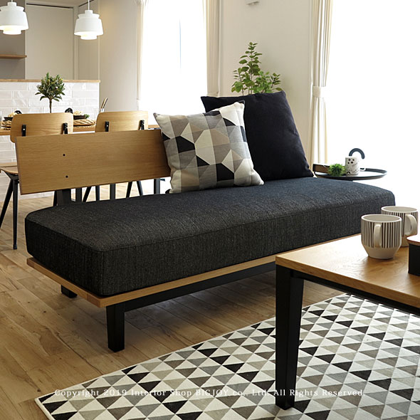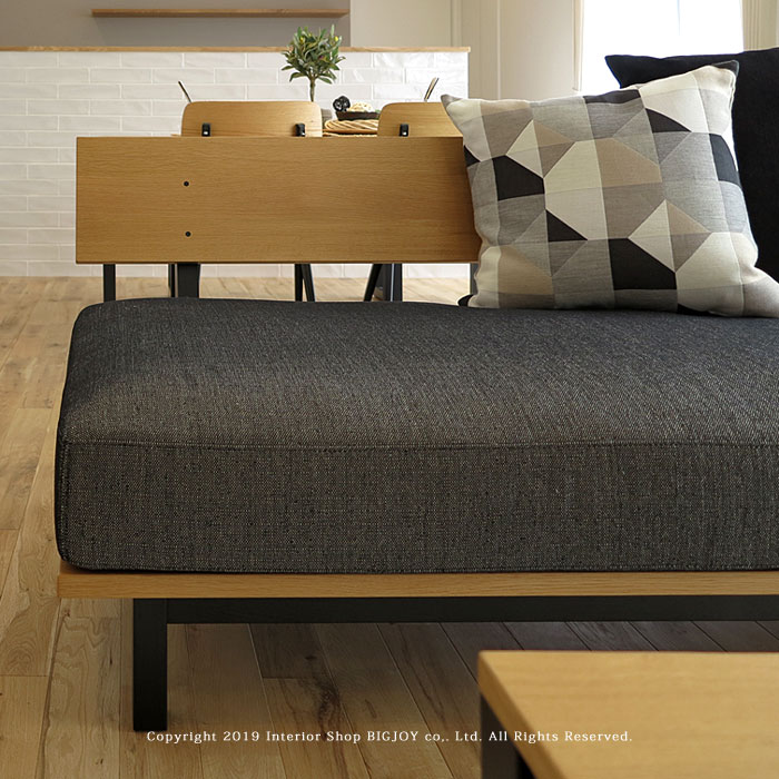 背と脚のコントラスト 脚と背もたれのフレーム部分はオーク材を黒く塗装した部材を使用しており、ナチュラルとブラックのコントラストがカジュアルでオシャレなリビングを演出します。